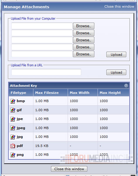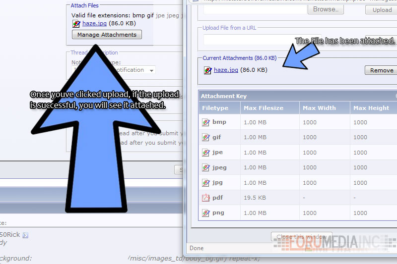 Click close this window in the attachment box *your attachment should be added and should be seen in the new post / reply box as an attachment