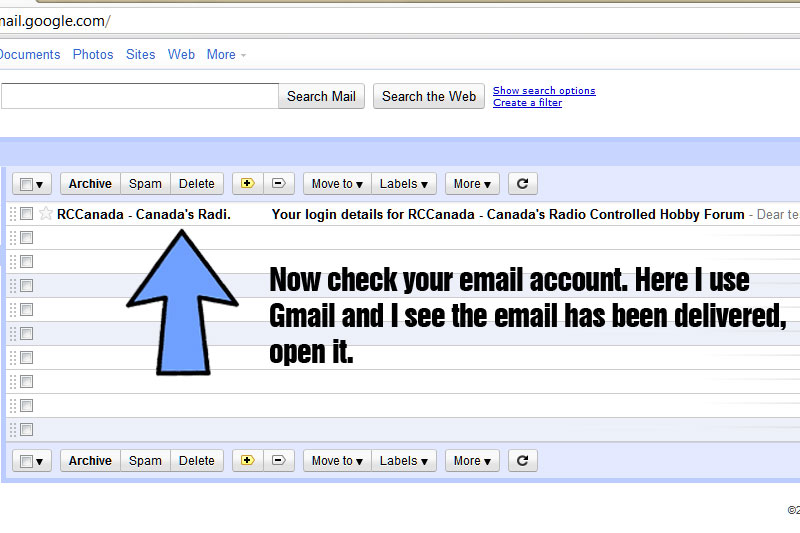 Step 3: Check your email for the automated email from the site. It may take a few minutes for it to arrive. If you do not see the email check your spam box. Generally the email will come from webmaster@thesitename. It is very important to check the spam box and or your email filters. If you find it in the spam box you need to add that email addy to your friends list (may be called white list). The site does send out emails from time to time. If you want to participate these emails will assist you in that.