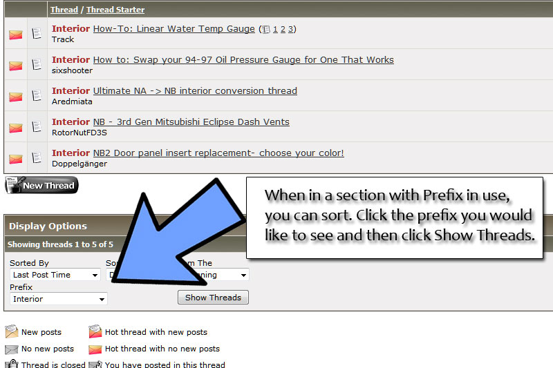 Prefixes can be searched and sorted. This becomes very useful on very active sites with prefixes. MiataForumz.com can be sorted to show only the prefix you are interested in. For instance I have sorted by the prefix interior, here are the results.