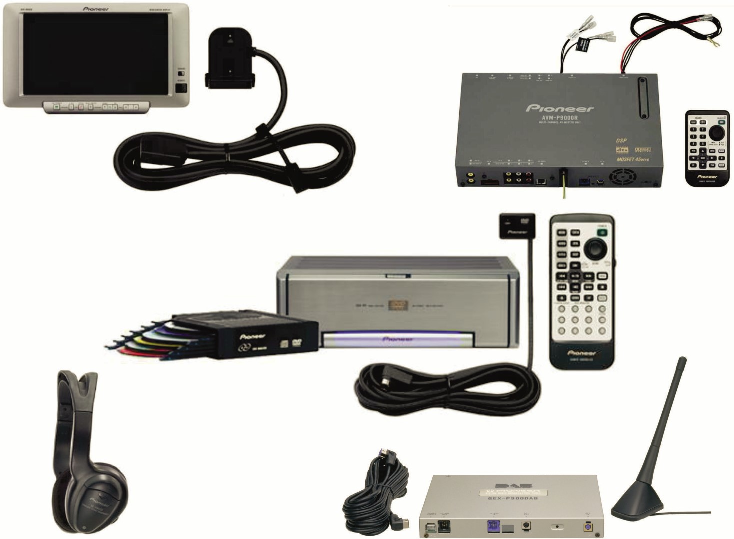 AVD-W6010 6” LCD monitor / head unit GEX-P900 DAB tuner XDV-P9 DVD changer AVM-9000R 6x45w amp with DSP processor SE-IRM250 cordless headphones