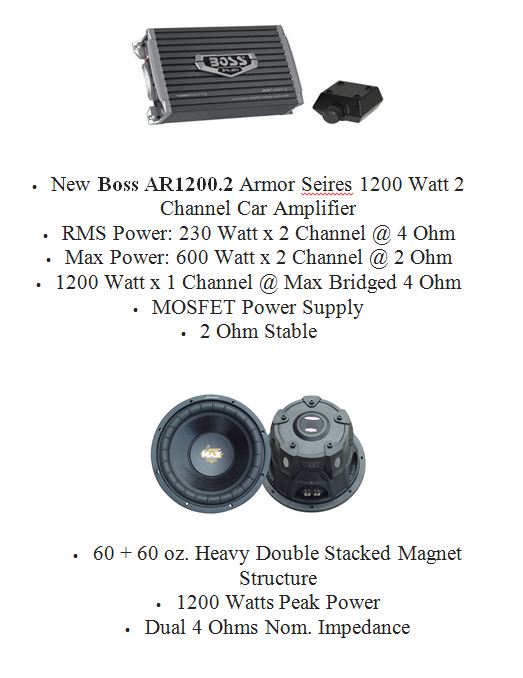 I had a 12" cerwin vega subwoofer in a 3 cu ft enclosure with a JC whitney amp that was supposedly something like a 4,000 watt amp it was 20 years ago so I don't remember for sure but that set up boomed like you wouldn't believe. My current up I attached the specifics in the attachment and I am trying to figure out what needs to be done to get a system like I had again. The way I have this current system wired is parallel and then using 2 channels. The sub woofers don't have an RMS rating listed. I have hooked it up in parallel and then bridged it into one channel and it overheats immediately. So the current way I have this wired is giving each sub 600 watts at 2 ohms? When I had it hooked up bridged it would have been 1200 watts for each sub at 2 ohms which is why it overheats? If I could get it hooked up bridged at 4 ohms it would be maxed out and work correctly? How can I achieve that?