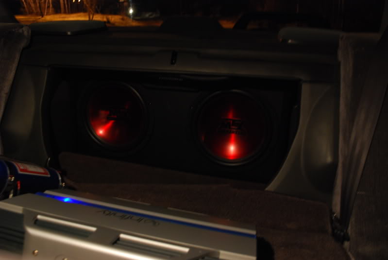 I have been having trouble with my system basically since I installed it. I can put it to around 19 on my deck usually with normal driving, but if i turn it up more the amp will cut out driving the subs, but the speakers will keep going. After a second the subs will pump a beat and cut out again. I am good with car audio, but not a pro. On my capacitor the voltmeter reads as low as 11.0V. I do not have a large system, only 650W rms. A friend of mine suggested that it could be fixed by purchasing an optimum yellowtop deep cycle battery, since I have a motomaster eliminator right now and it is coming up on 3 years old, and my alternator is only a few months old. Does anyone have any imput? This is my set up Attachment 21880 and this is my car Attachment 21881 |