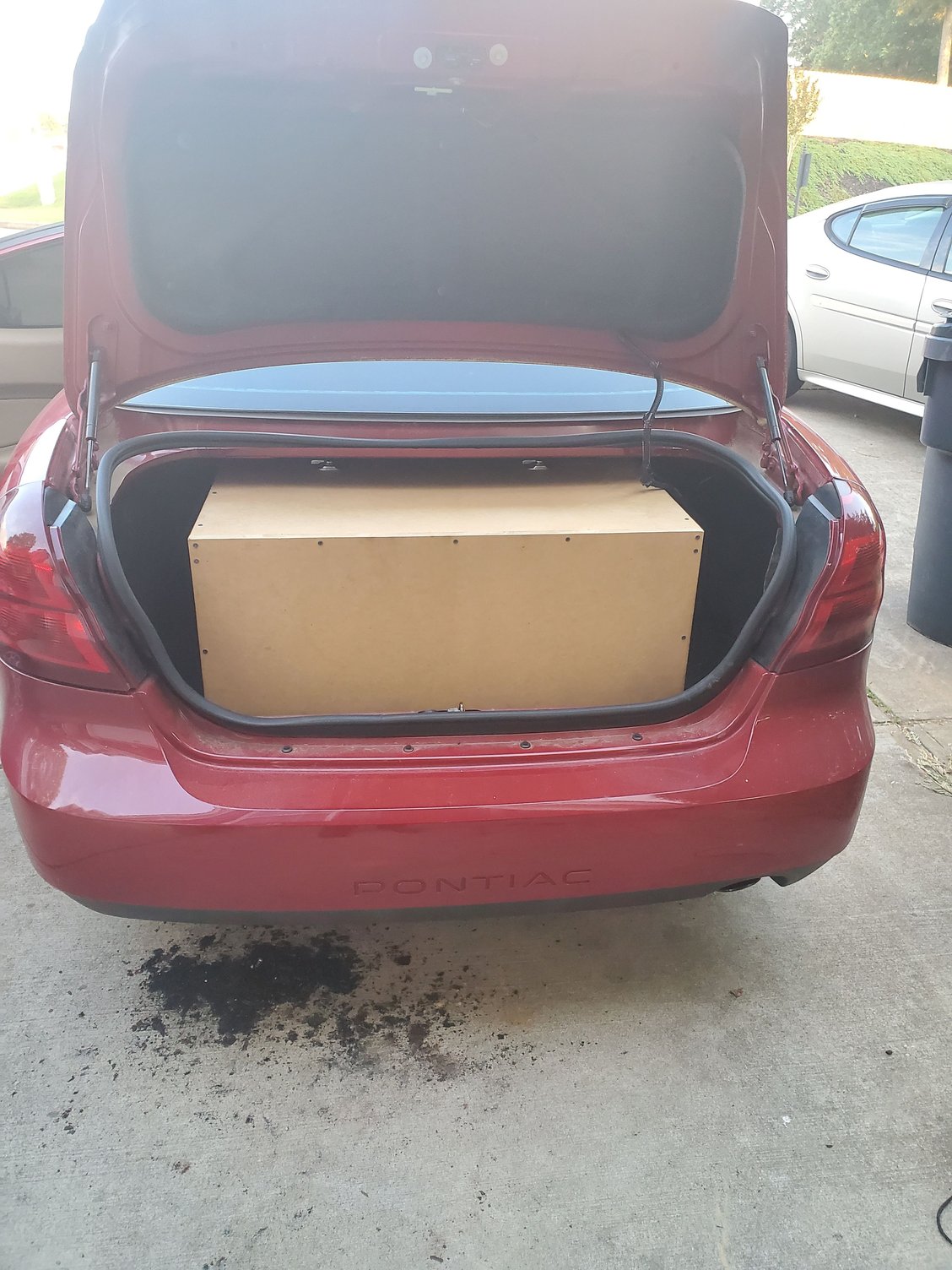 Just had a quick question. Im taking some 15's I had in a previous build and putting them into a different car (2008 pontiac Grand prix) I am building a slot ported box for 2 skar audio evl 15's with the SPEAKERS AND SLOT FACING FRONT ( current box dimensions are( 35" W x 15.5" H x 34" D)with 3/4 MDF @ 8.82 cubes gross. I made about 10 card board box mock ups to test fit a box in the trunk which has a terrible shape... so the box dimensions are restricted to what will actually fit in the trunk. My current design is going to have latches (2 on each side and 2 on top) to take the back of the box off for both installation and optional trunk storage as I also do a lot of camping. My question is Port Dimensions. I have come up with a port of 4'W x 14"H x 12"D. I wanted to tune close to 30 hz- I have used multiple port calculators -Slot Port Width is restricted to only 4 inches due to box width and port Height is max at 14 inches. The Skar EVL 15 has an xmas of 23.5mm. Almost every calculator says a port length of 12-13 inches. Does this sound ok? it sounds short but all the reading I have done states usually the length is calculated on box depth and xmas. I wanted to get some opinions before I build the port. I though of doing to round ports but my thought is a slot port in the center will also act as bracing for the box and keep it simple and functional. The calculators say the same depth for 2 six inch round ports anyway so it would be about the same. I know that the round ports will reduce noise but bracing for the ports would probably take up more internal box volume than the slot port design.