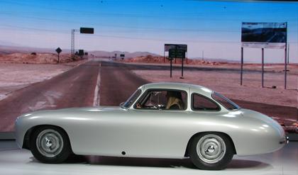 The old one was the original 1952 Mercedes-Benz SL, for "super light." At the Westin Cadillac Book Hotel in Detroit, one of the originals was driven out on the stage after a careful explanation that the model is so rare that one barn find in unrestored condition sold for more than $2 million. Mercedes officials looked relieved when the SL was able to drive across the stage, and wasn't backed into the brand's zillion-dollar video display that had been set up in the giant presentation hall.