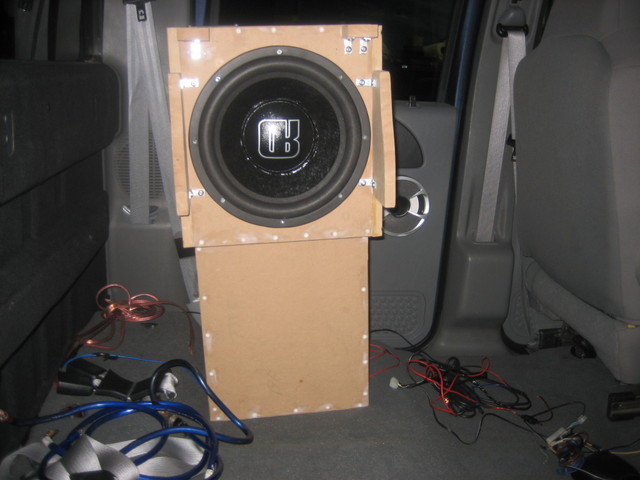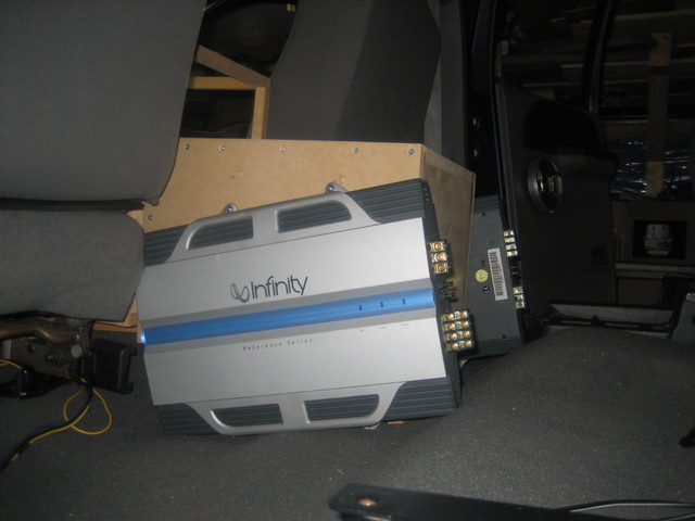 Original plan was to hang the amps on sub box and mount Power distribution & Inverter under the seat: