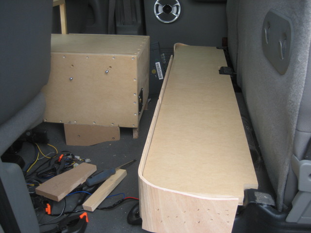 Reworked the under seat area to hold amps and processor plus fab'd up a mount for the rear wall to hold power distribution & Inverter: