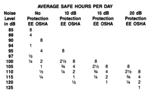 Chart for safe db range listening times (to avoid hearling loss)
