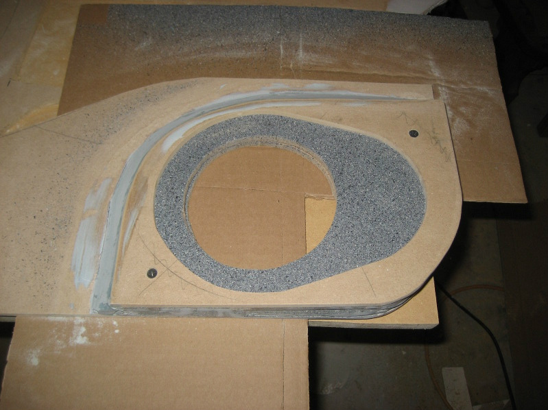 I was thinking of an angling the door panel out at the bottom and moving the speakers right to the front edge of the door. They are about 6" back from the front edge right now. Will do the same removable black grill as the sub and the fleck stone paint on the baffle.