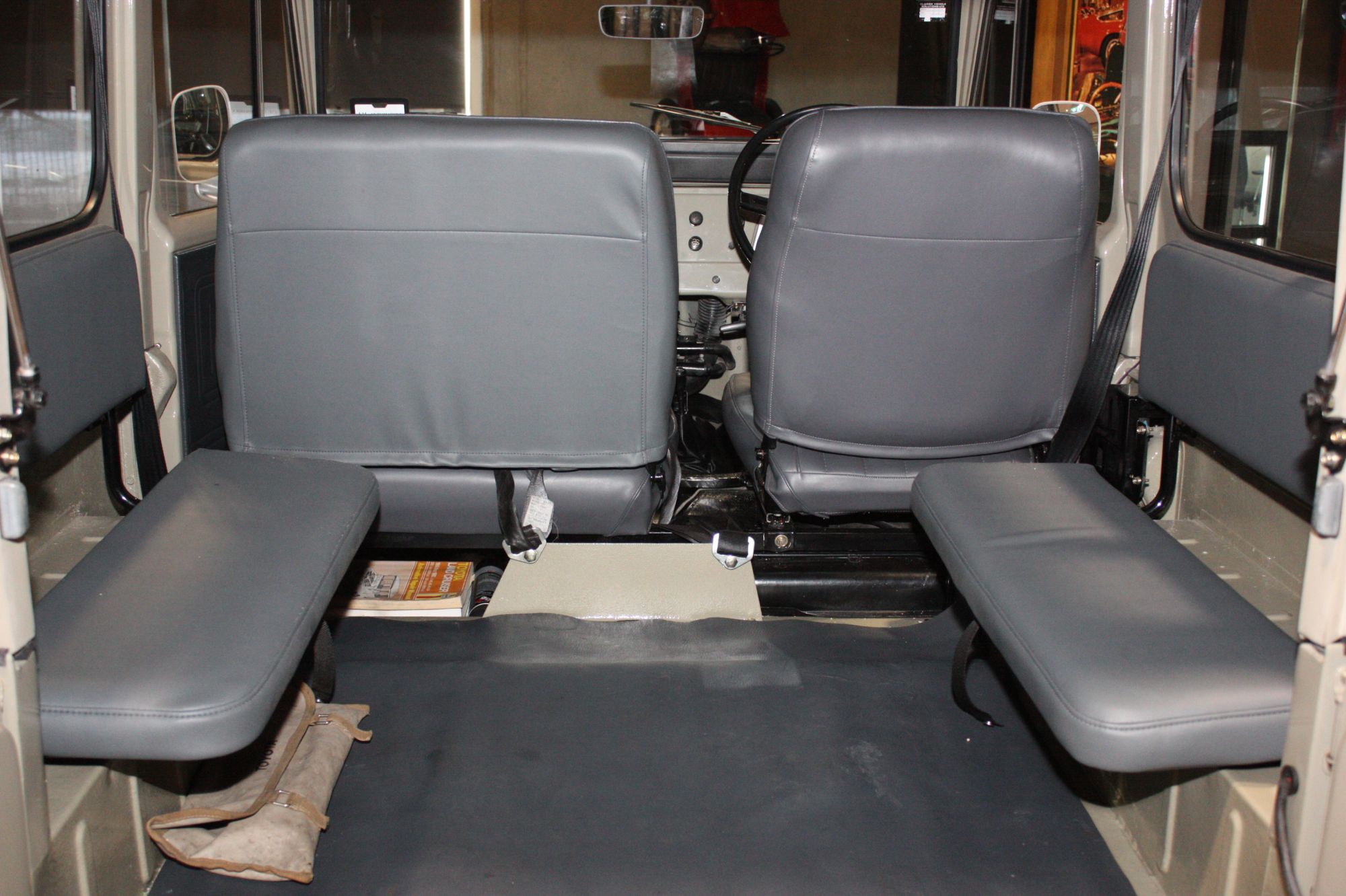 Now not only is the cargo area very special but as I mentioned...that windshield is flat glass....AND the dashboard is extremely minimalistic which wont deflect or absorb any waves like most dashes nowadays will which have countoured compounded sides and edges for comfort. Clearly this fj40 was built for function not for comfort at all.