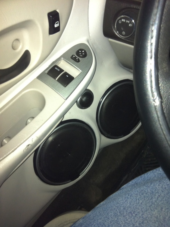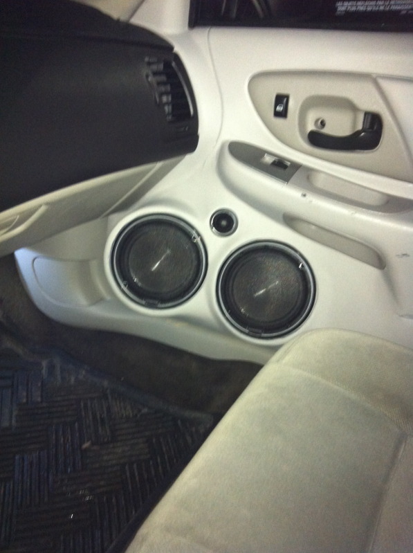 With the recent changes in the DBDrag and me losing interest and my wallet losing money I decided to give up trying to get more SPL and go aim for SQ. I don't work in a audio shop or a body shop. I do this as a hobby. I decided to add a few things to the front stage. The first thing is my A-pillars. I added Dayton Audio 4" mids to the the stage.