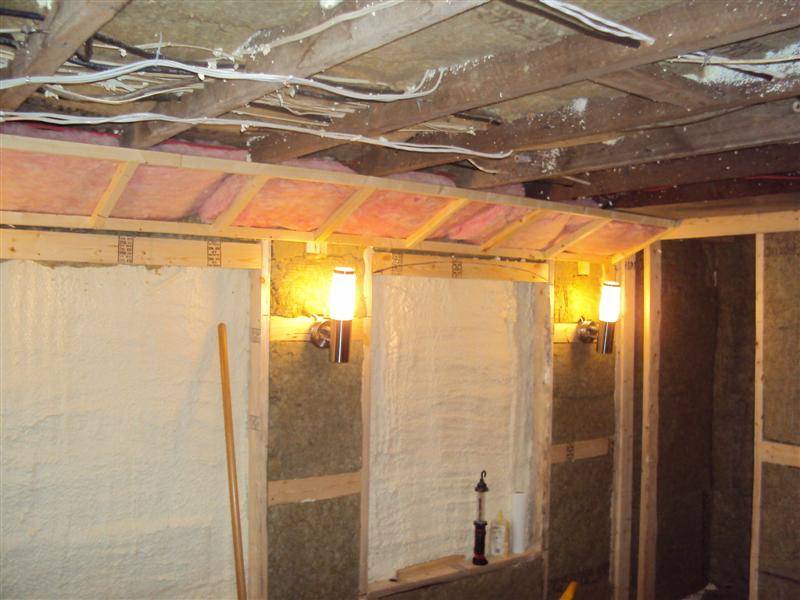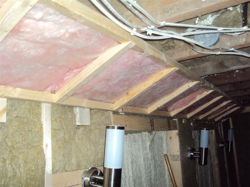I spent this weekend getting the laundry room upto speed with the sound room. Things are going pretty well. Laundry room is all framed and partially insulated. The sound room has all the roxul insulation installed and I'm ready for drywall. The bulkhead in this room will act as an additonal bass trap. I also took some shots of one of the light switches and my speaker wire (just for Julian).