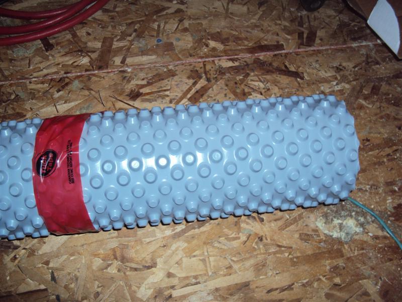 Anyone who has finished a basement has probably used Drycor. The 2ft x 2ft toung and groove panels that are very easy to install. It a great system, but also an expensive one. I'm cheap, so if I can do the same job for less money, I'm all for it. In the case, I buy a roll of plastic sub floor materil and cover it with plywood. It does the same job, has few joints, that get tuctaped togther (where Drycor can be) is ultra fast to install and about half the price of the little squares most people will use.