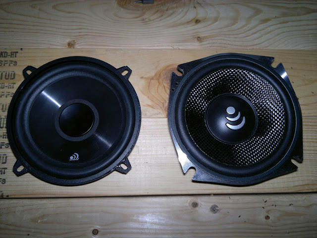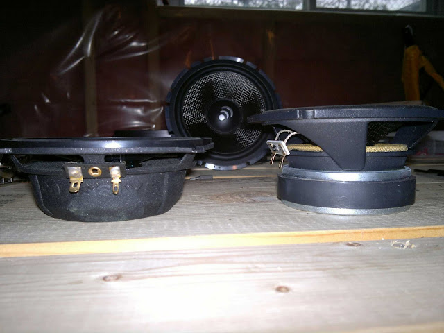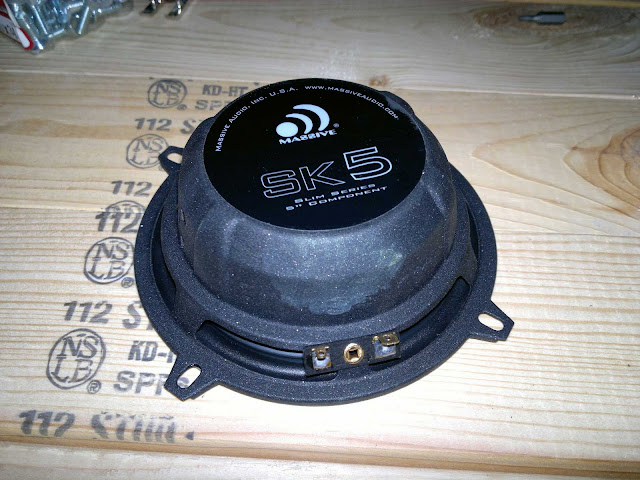 The new shallow 5 1\4 that will be replacing the other beefier and also to big 5 1\4. This is form the shallow line form massive audio. These little things are pretty. Massive knows how ot make things look good. And they are pretty damn shallow. You can also see the 6.5inch standing in the background. Sweet mid it is.