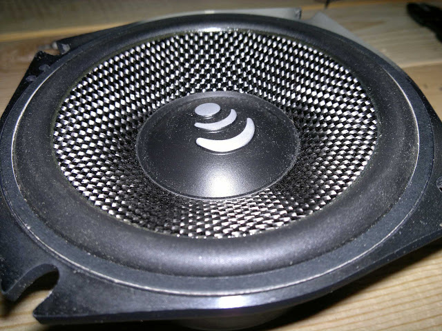 Here is a close up of the cone. Very attractive. We can see the cap looks a bit odd, tha's because these can come in coax mode with a tweeter sitting in the place of the cap.