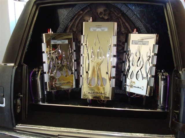 Amps are finally in and the back of the hearse is done.