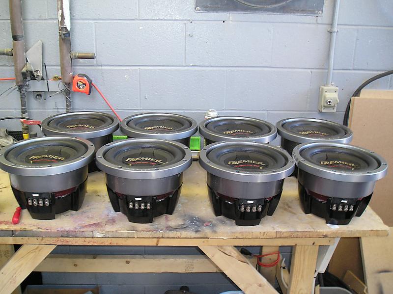 It should burp mid 150's and Bass Race 149.9. We have 10k rms, (7) Pc1500 Batts, 350amp alt, and (8) 12's in a 4th Order BAND PASS WALL! And its tuned for music not burps. More Pics Tonight when I get more done......