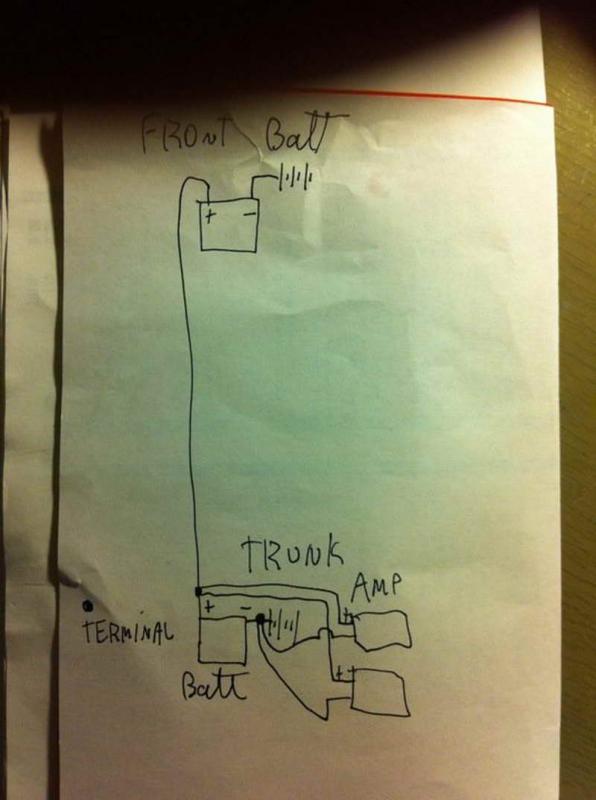 i was ready to plug everything back but my friend told me to add a 2 battery in the trunk since i have one new batt lying around it the same as the front one