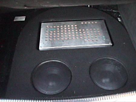 picture is an old one of my custom enclosure in the tire well still using the Boston subs. The Xtant EQ is in a side panel where the CD changer is supposed to be.